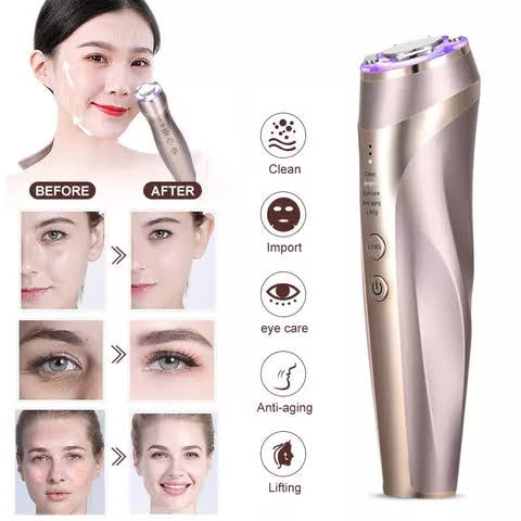 • RADIOFRECUENCIA: profundamente en la dermis de la piel, calienta la piel, fortalece el cuidado de la piel y nutre profundamente.